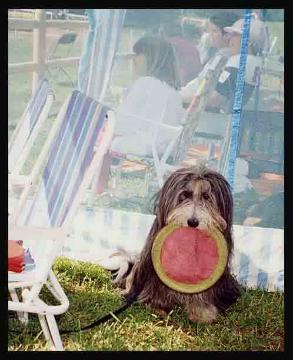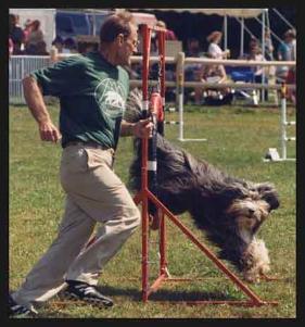 | "Agility is my most favorite event! I climb high things, jump over others, run through tunnels, weave through poles and ride on a seesaw. If Dad only knew the fun he was missing by only running beside me!" |