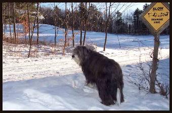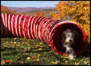 | "This is my front yard where I practice agility. Vermont is very hilly and my home is on the side of a hill - not much flat lawn for my Dad and me to practice on!" |
