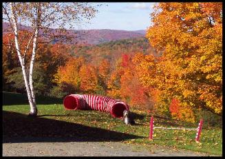 | "Vermont is in the northeastern USA, and it is one of the six states called New England. Its winter can seem to be the coldest and snowiest, its spring the wettest and muddiest, its summer the hottest and most humid but its autumn makes it the most tongue-lapping, tail-wagging beautiful place in the world. I wouldn't want to live anywhere else!" |
